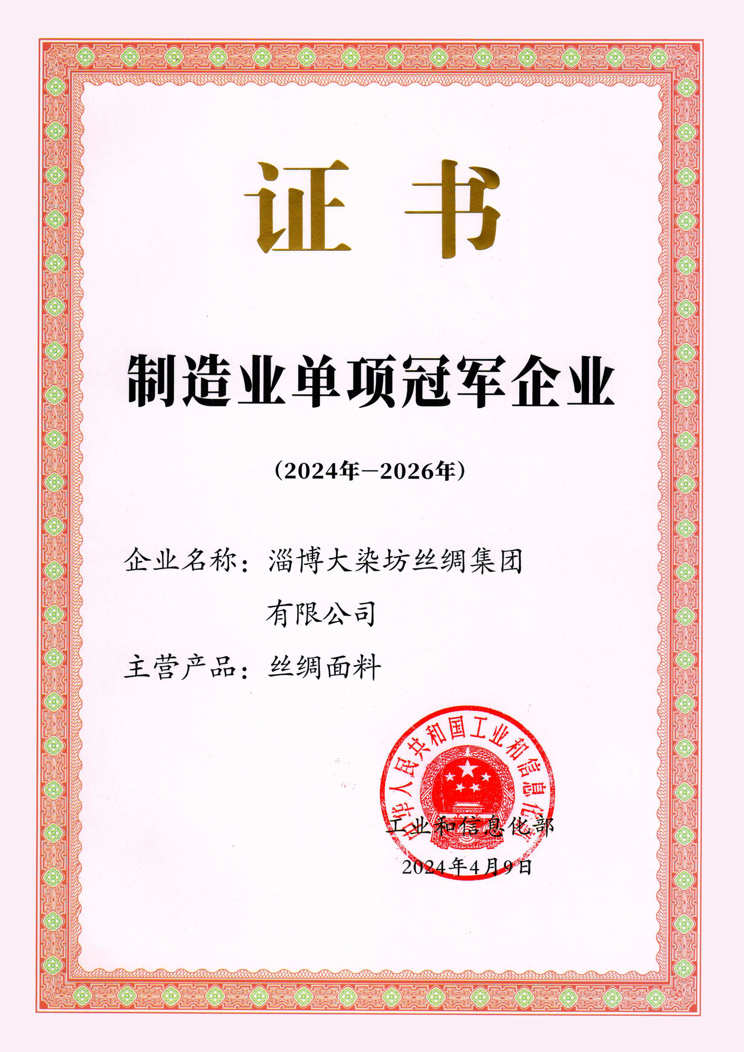 • Demonstration enterprise of single champion in manufacturing industry